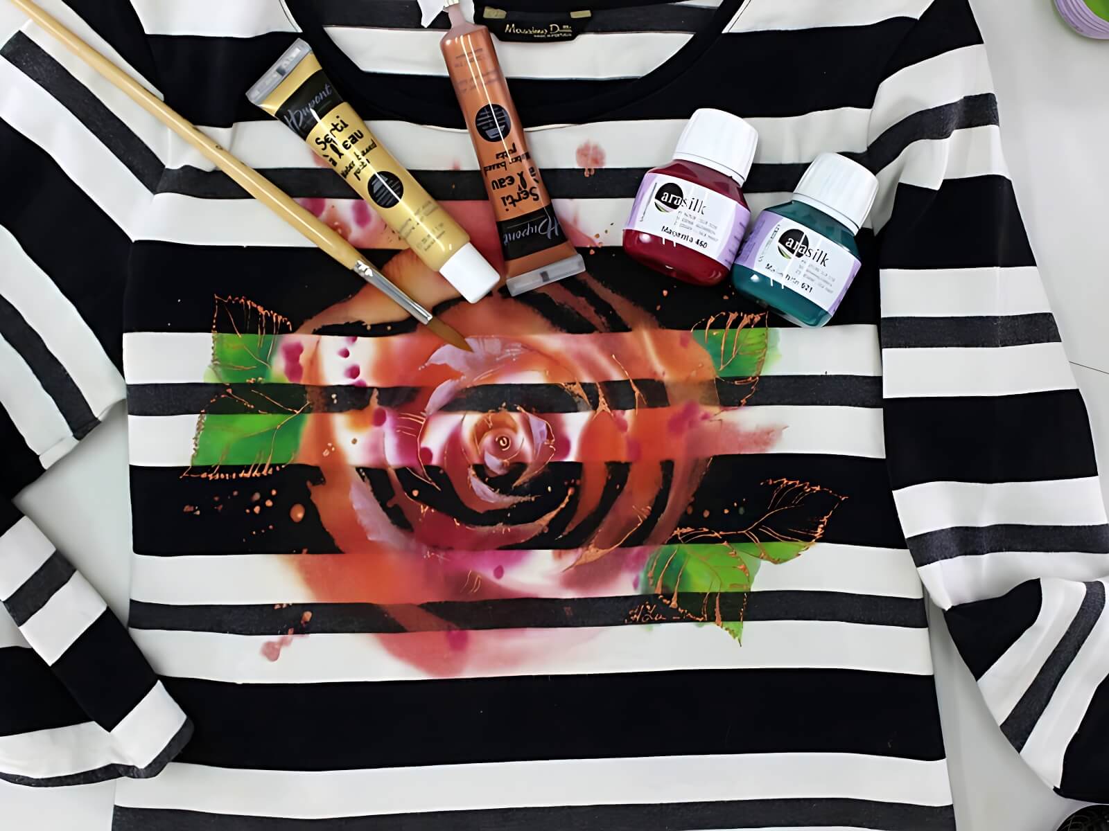 Мастер-класс "Роспись темной одежды. Роза".